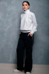 Calça de moletom Tina, com friso off white nas laterais, e bolso faca, elástico na cintura. Conforto e sustentabilidae do nosso moletom algodão responsaévl BR priduzido de forma sustentável.