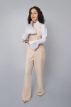 Camisa Júlia confeccionada em tricoline com elastano (quantidade mínima de elastano, para não amassar muito o tecido), detalhes de entremeio de algodão, colarinho, babados nas mangas e abotoamento por botões de madrepérola.