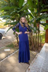 Vestido longo confeccionado em viscose creponada, com busto transpassado, alças finas, saia em 3 babados levemente rodados. Fechamento por zíper invisível na lateral. Forrado